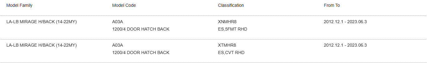 MITSUBISHI LB MIRAGE HATCH - Carpet Mat Set MZ511963EX